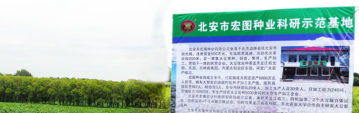 北安市宏圖種業有限公司是一家及大豆育種研發、生產加工、銷售于一體的種業企業 ,成立于2010年6月24日。公司坐落在北方邊陲重鎮北安市趙光鎮,公司擁有趙光農場、紅星農場、建設農場等多家良種繁育基地。得天獨厚的地理優勢為繁育出優質的大豆種子提供了便利的條件。